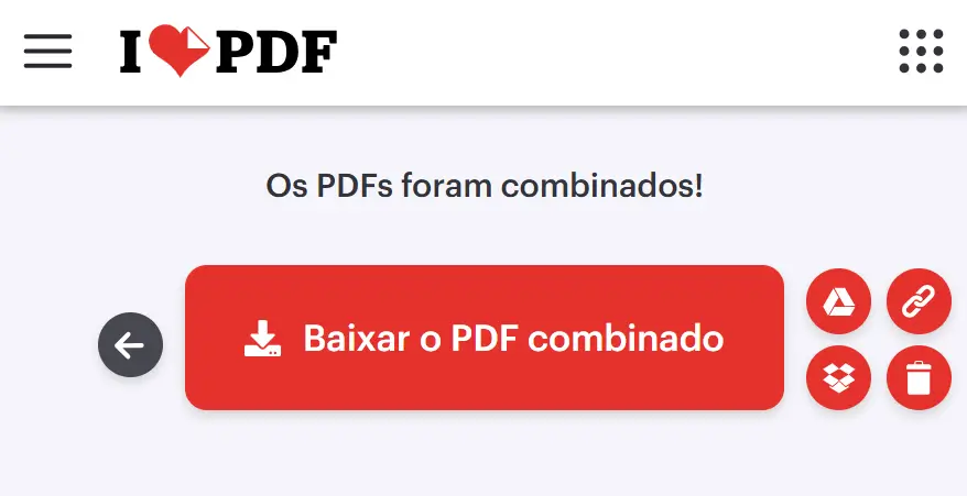 Assim que o processo terminar, aparecerá um botão “Baixar o PDF combinado”.