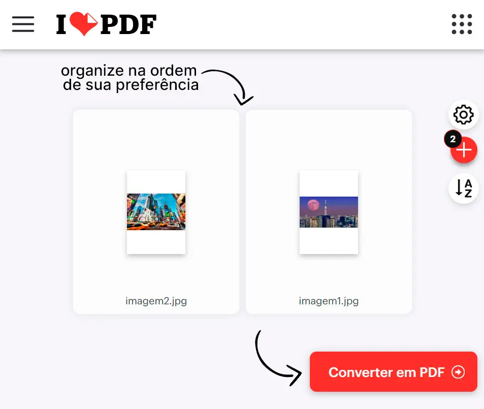 Passo a passo para juntar imagens em PDF no i Love PDF